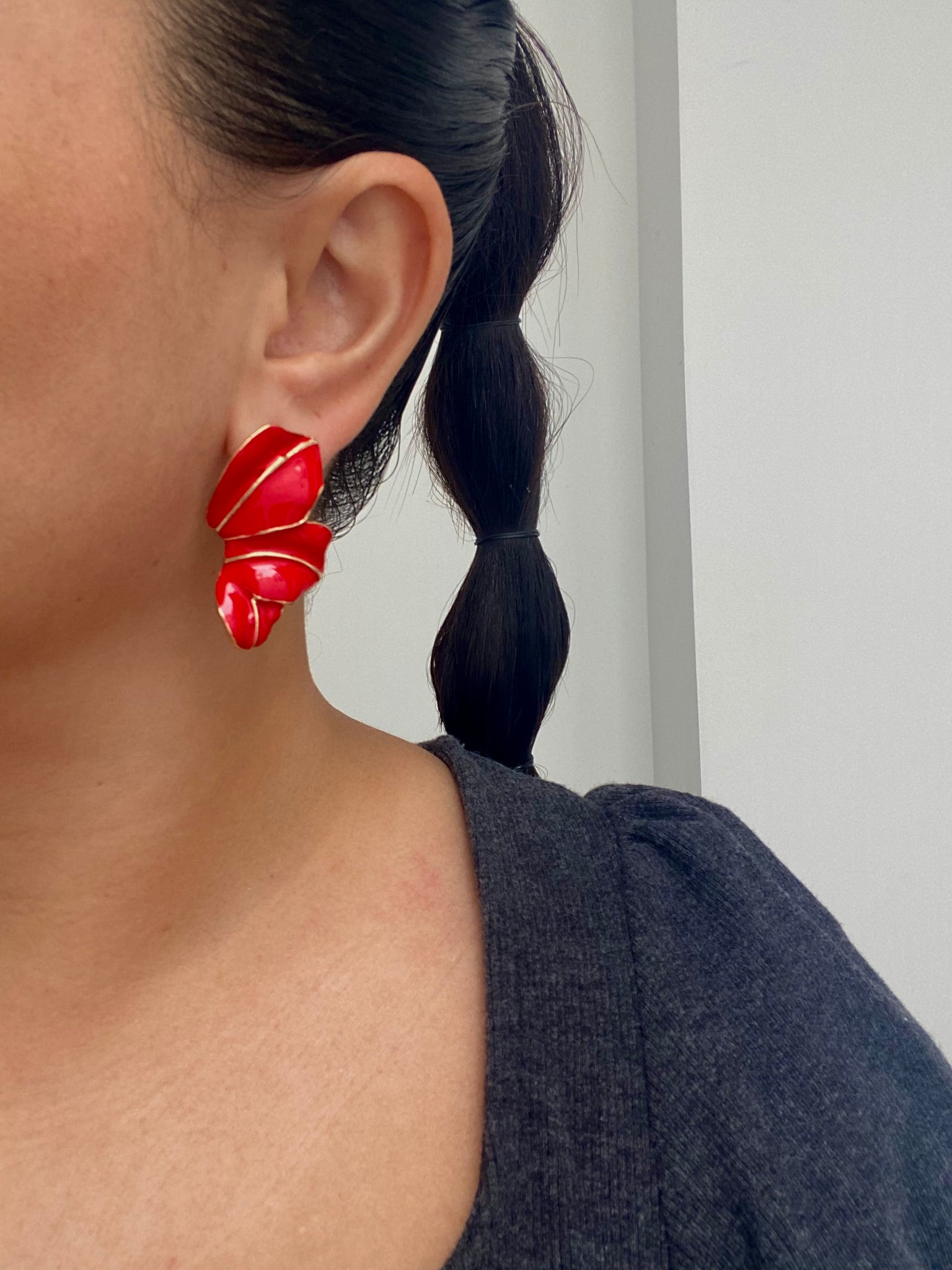Los aretes Lali en forma de media flor, de un color rojo vibrante y 4 cm de tamaño aproximado, son el detalle perfecto para resaltar tu estilo con un toque de elegancia y frescura. Su diseño delicado y llamativo añade personalidad a cualquier look, haciendo que cada outfit destaque con un encanto único.