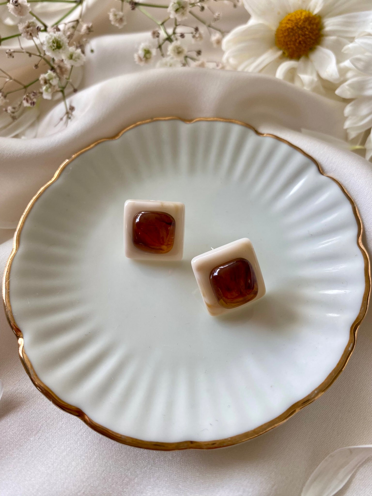Estos aretes cuadrados estilo botón en tonos beige con el centro en color camel aportarán un toque fresco y versátil a tus looks. Hechos de acrílico con un tamaño aproximado de 2 cm, son perfectos para usar todos los días, combinándolos fácilmente con diferentes estilos y colores. Su diseño discreto pero distintivo resalta tu personalidad con sutileza.