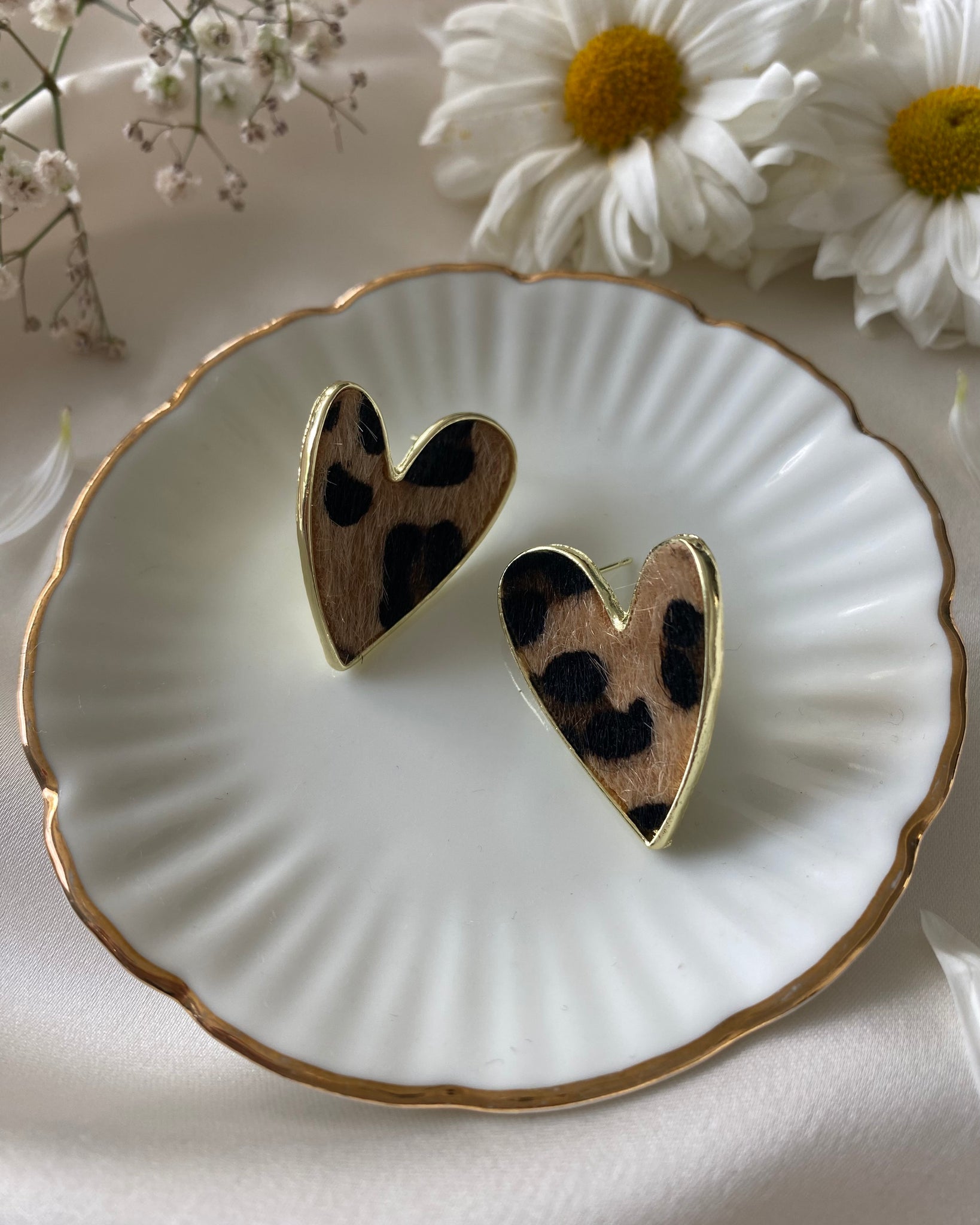 Material: aleación de metales: plata, acero, rodio, cobre y nikel. Con una tela de pelitos con diseño de leopardo.